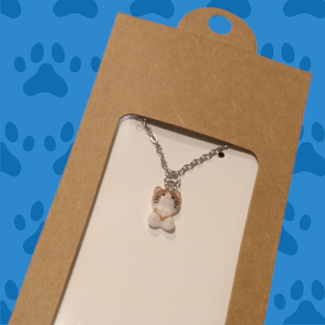 Collier petit chat marron et blanc de 1cm. Chaîne en acier inoxydable 304. Taille 50cm.