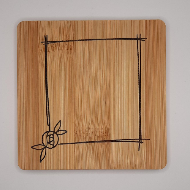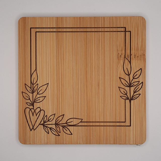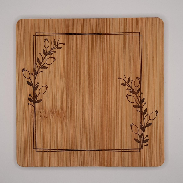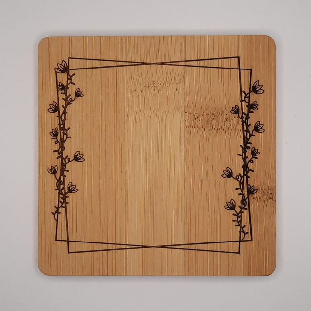 Lot de 4 dessous de verre en bambou. Forme carré. Gravure laser. Personnalisable à la demande.Taille 10cm