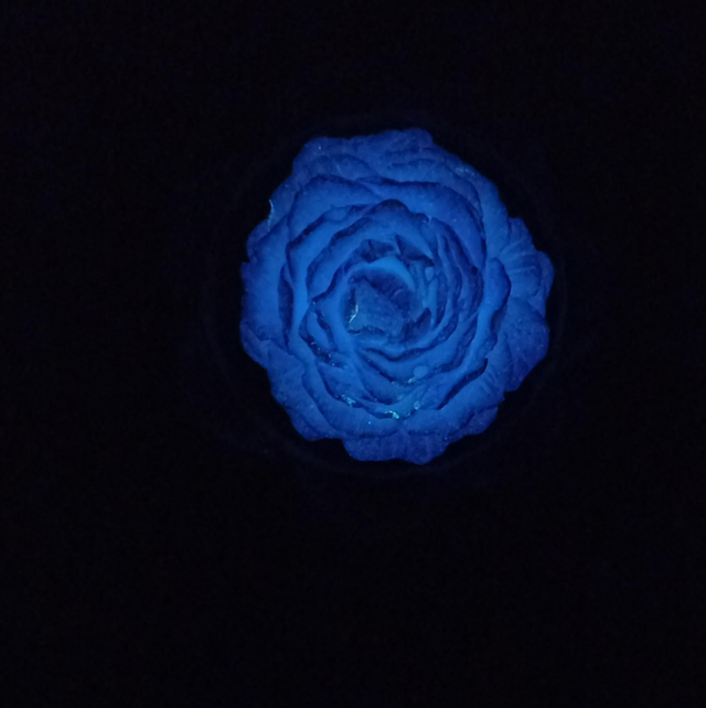 Fleur de lotus en impression 3d et rose violette en poudre de résine luminescente.
