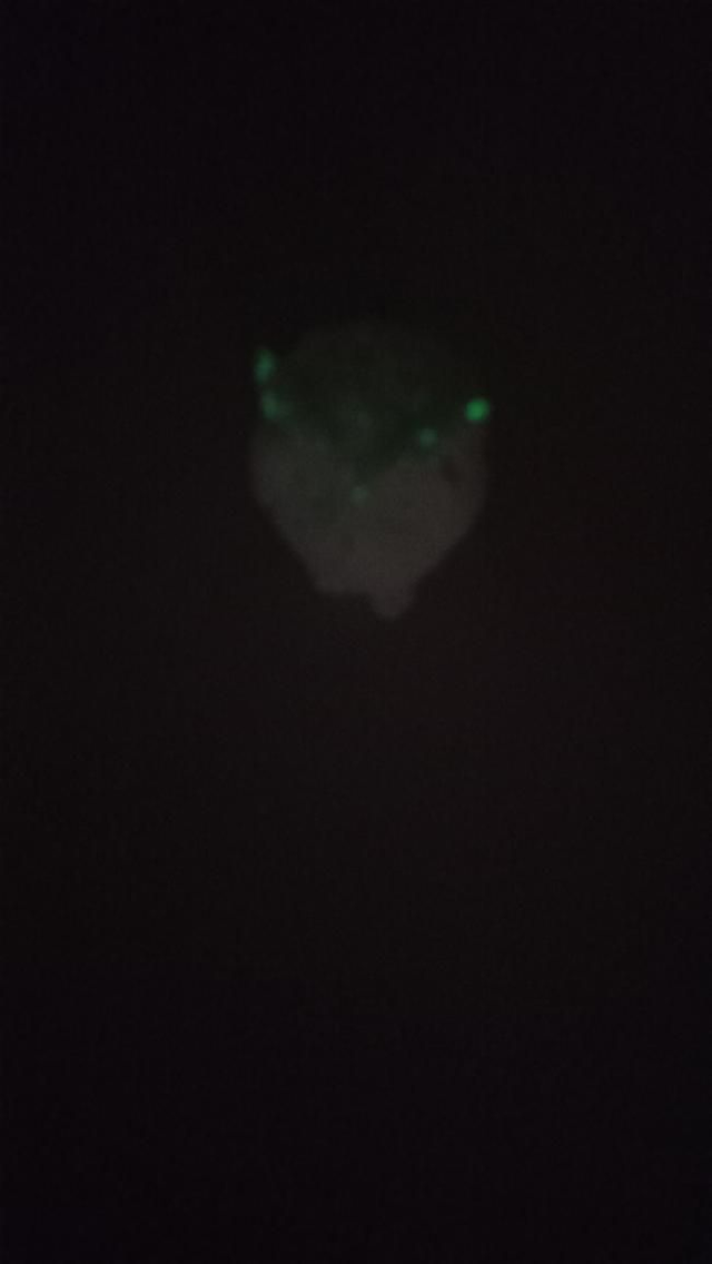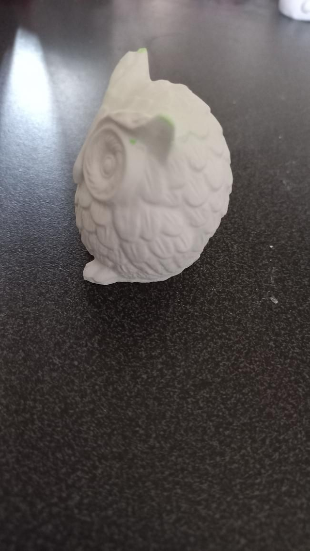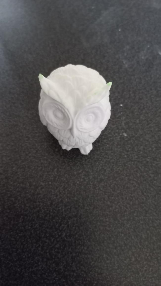 Hibou luminescents blanc qui s'illumine vert. Peut-être peint à l'acrylique.