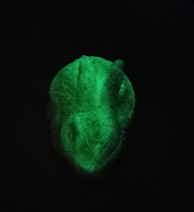 Joli lapin luminescent blanc qui s'éclaire en vert la nuit. Lapin mignon, avec plein de tendresse.