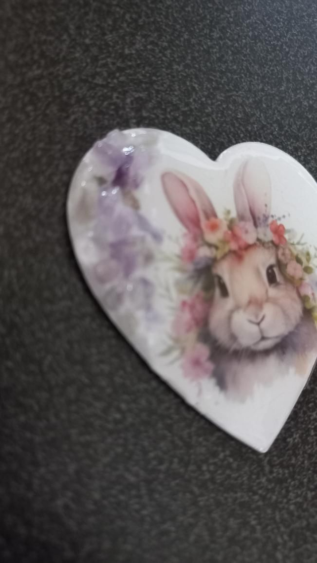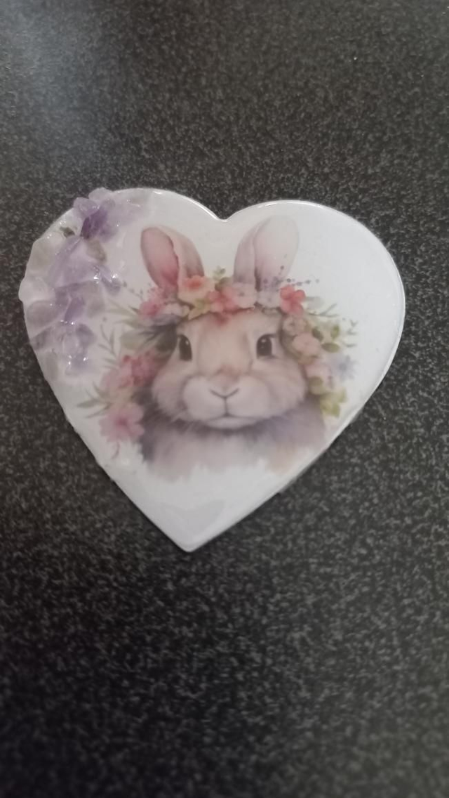 Magnet avec un mignon lapin et sa couronne de fleur inclus des pierres gemmes Améthyste
