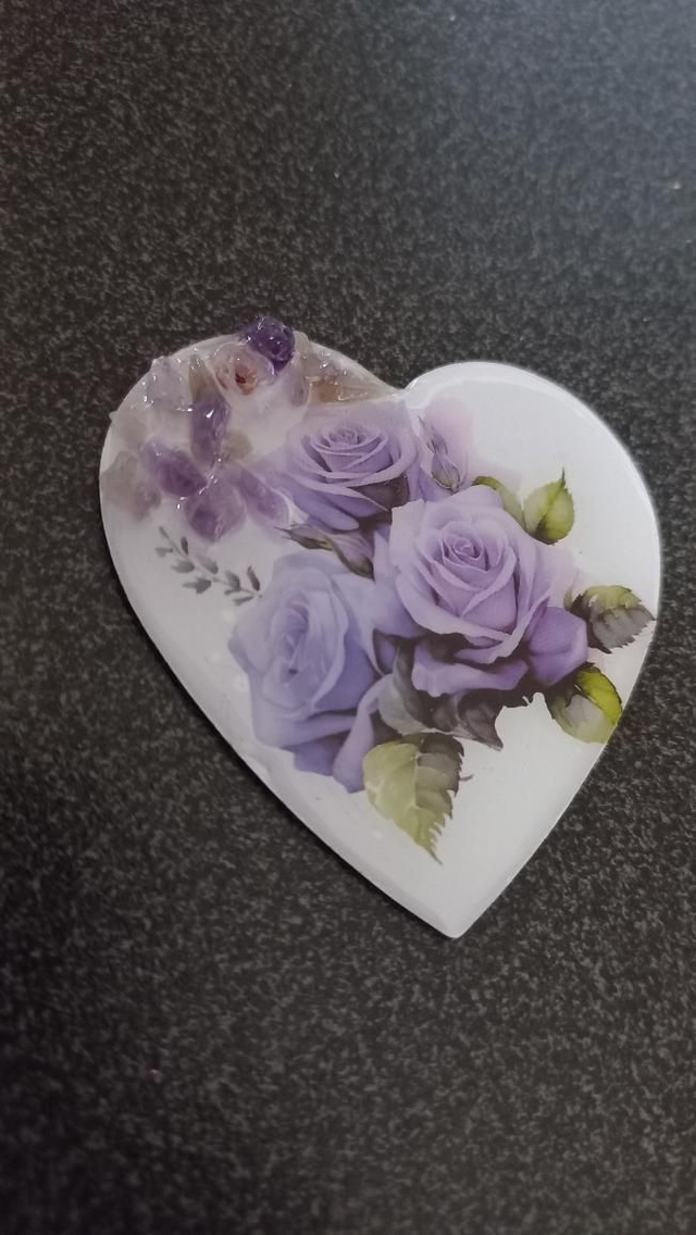 Magnet pierres gemmes avec des roses violettes et des pierres gemmes Améthyste.