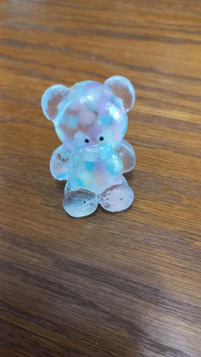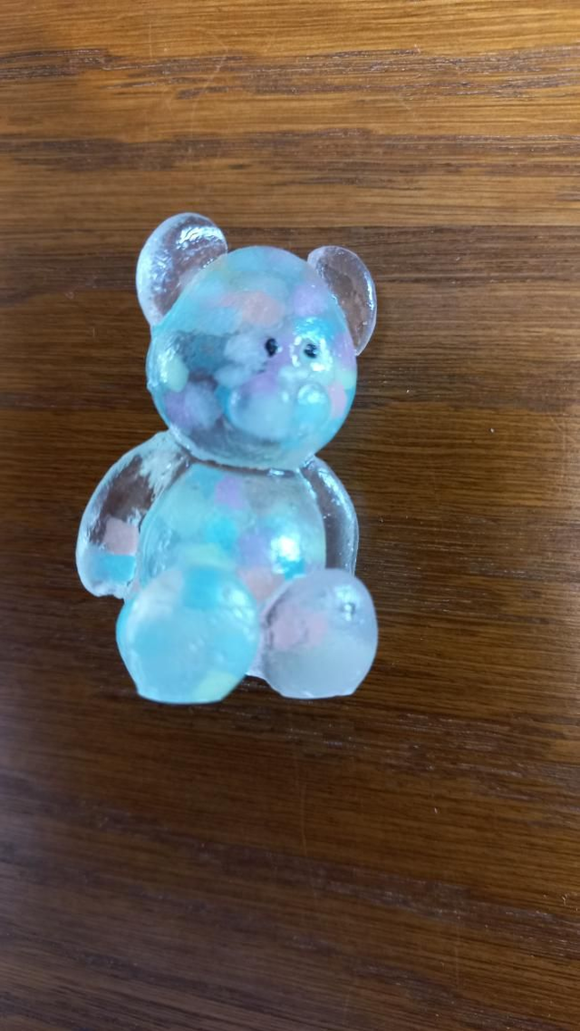 Ourson luminescents avec pierres qui capte la lumière du jour. S'illumine des que la nuit tombe.