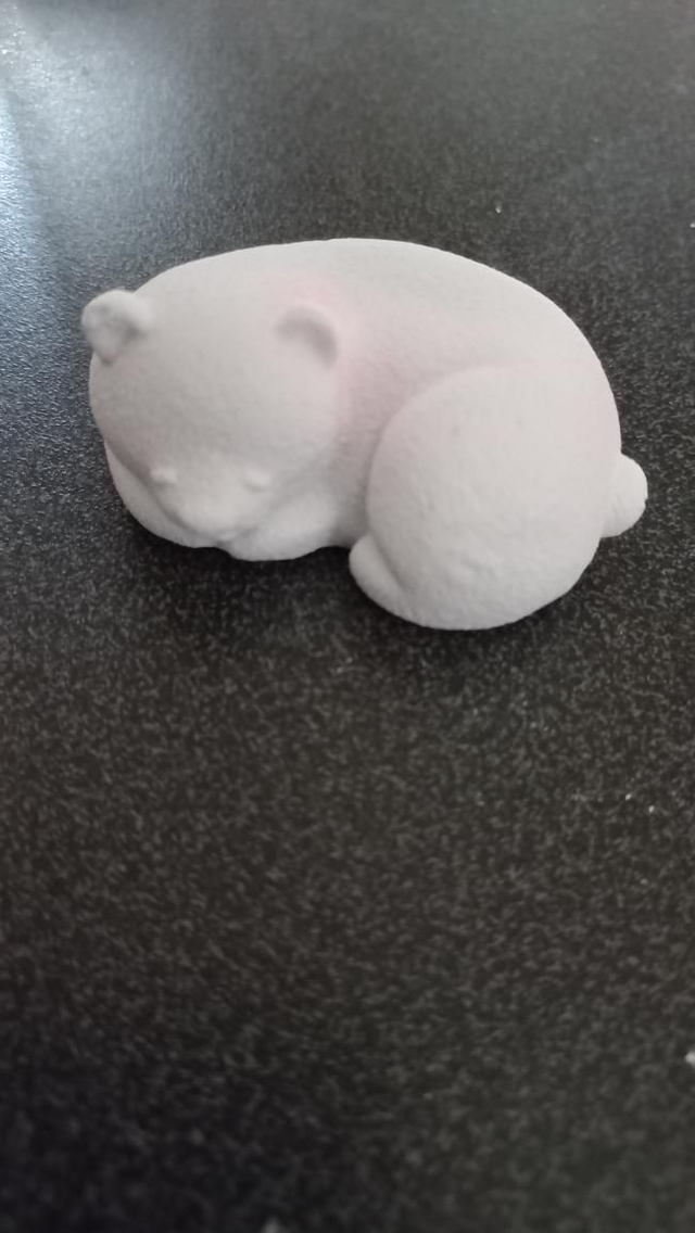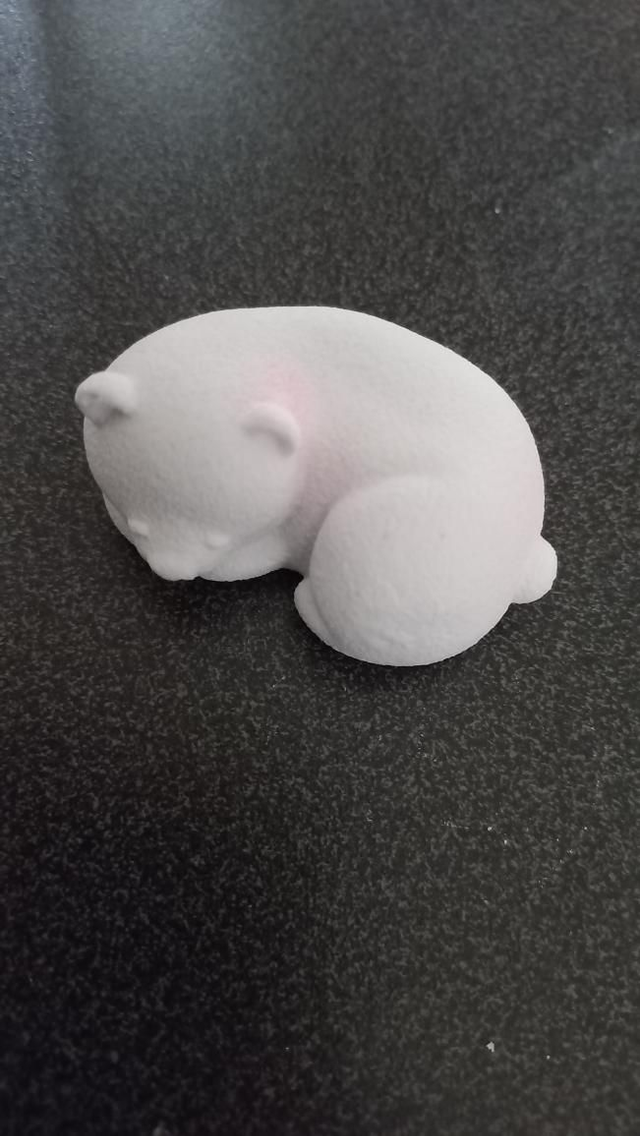 Ourson endormi blanc luminescents avec des reflets bleus et roses.