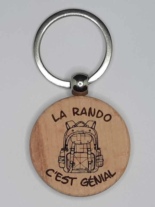 Porte-clés en bois avec gravure laser sur les 2 faces.Motif camping.Personnalisable à la demande