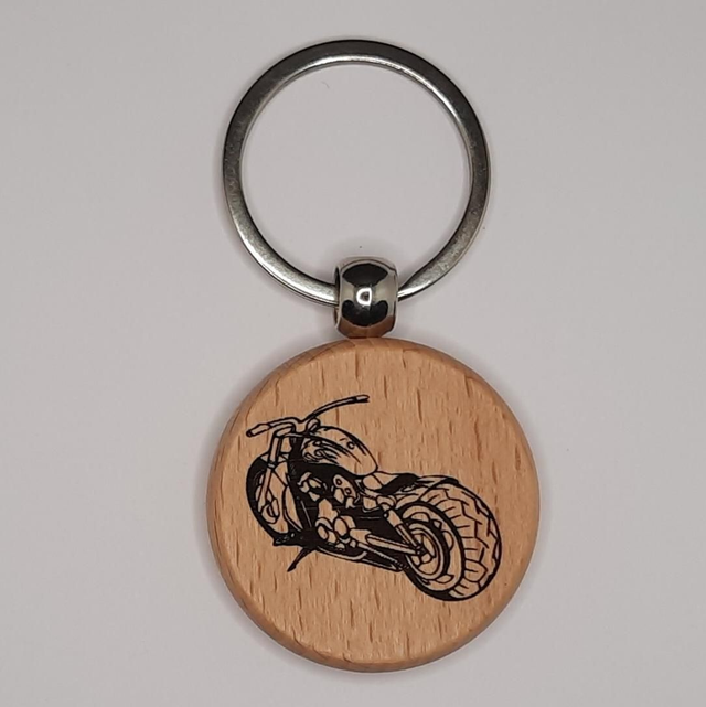 Porte-clés en bois avec gravure laser sur les 2 faces.Motif moto custom.Personnalisable à la demande