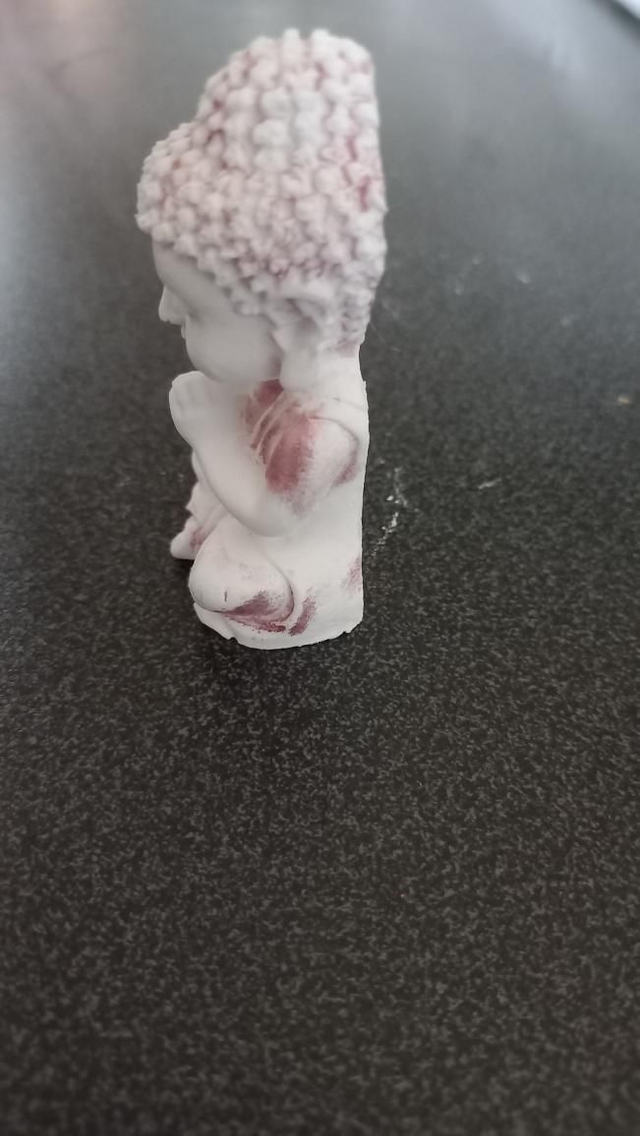 Bouddha de couleur rose saumon et blanc de 7cm de hauteur.